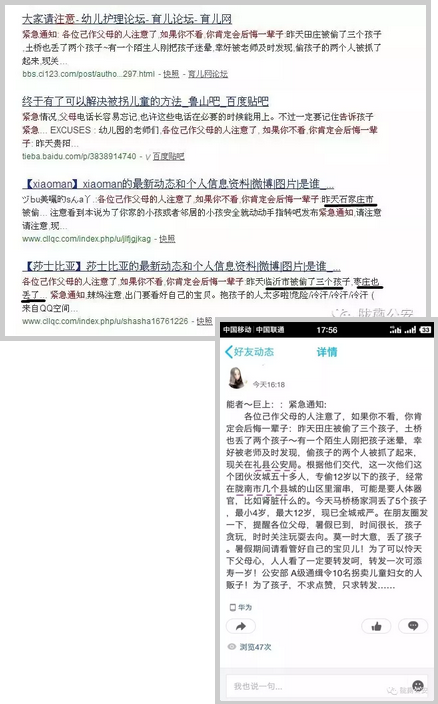 近日,我市各縣區(qū)都有網(wǎng)民相繼在QQ群、QQ空間及微信群、微信朋友圈發(fā)布了“搶孩子”等謠言,現(xiàn)以禮縣相關(guān)圖片為例說明。
