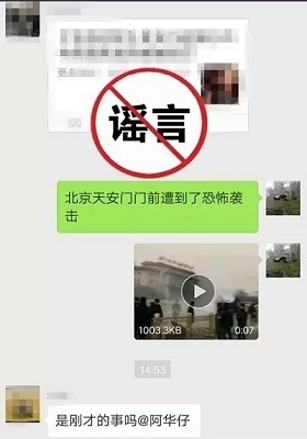 2月4日,浙江溫州網民“阿華仔”在多個微信群發布“北京天安門門前遭到了恐怖襲擊”的消息,引發網民恐慌。