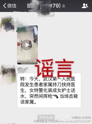 2月中旬,一段“武漢某醫院病人家屬持刀挾持醫生,被武警當場擊斃”的視頻在網絡大肆傳播,引發網民熱議。