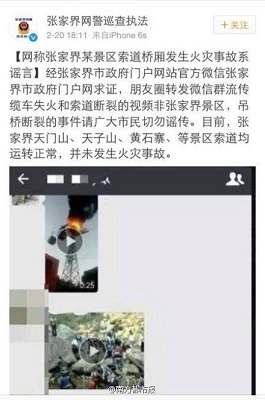 謠言9:張家界某景區索道轎廂發生火災事故