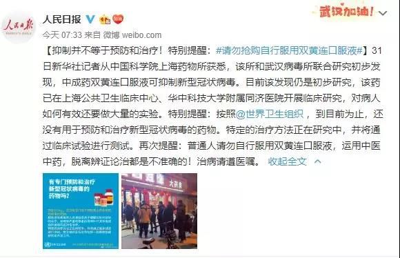新華社記者前期報道,“雙黃連”可抑制新型冠狀病毒,只是初步研究,沒有形成醫學界的共識,更沒有人體臨床成果。簡單的說,這還只是一家之言的說法。