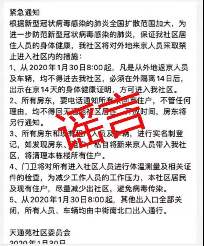 真相:針對網傳的天通苑社區將對外地來京人員采取禁止進入社區的措施的相關通知,相關媒體分別致電天通苑北和天通苑南街道辦事處,其工作人員均表示街道辦事處沒有下發該通知。沒有天通苑社區居委會這個機構。