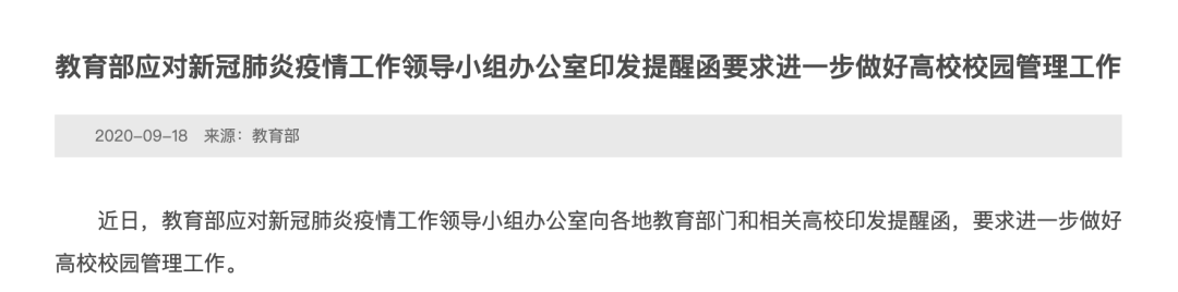 2020年9月,教育部印發相關提醒函時提到: