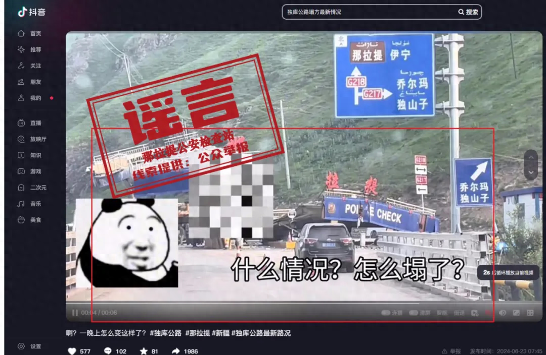 謠 言 新疆那拉提檢查站坍塌了?