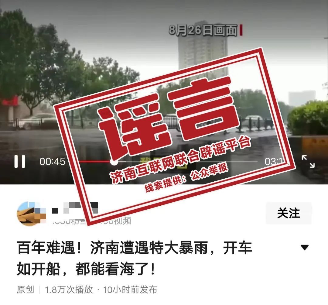 謠 言 濟南近日遭遇百年難遇特大暴雨?
