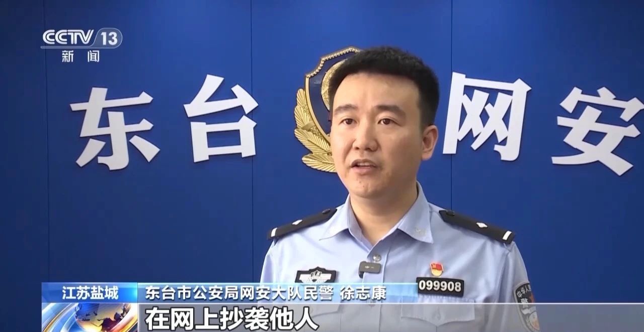 東臺市公安局網安大隊民警 徐志康:在網上抄襲他人“一女子相親點餐花費三萬多人民幣”文案后,自行出鏡擺拍,模擬接受記者采訪的場景。
