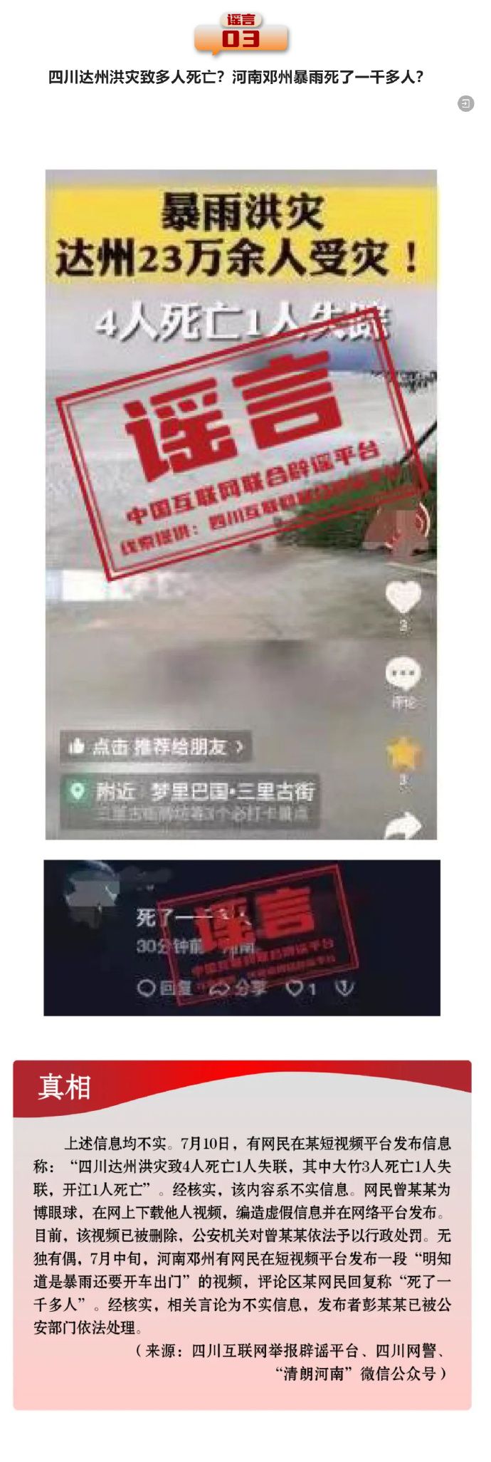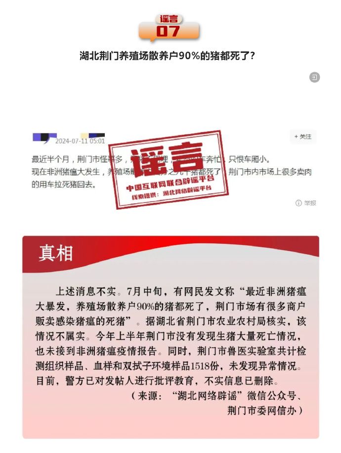 打擊網絡謠言 共建清朗家園 中國互聯(lián)網聯(lián)合辟謠平臺2024年7月辟謠榜