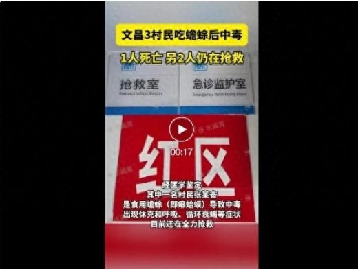 據文城鎮政府工作人員介紹,10月13日晚,該鎮一名村民在自家飯店中與兩名好友一起飲酒吃飯,并烹食了自行捕捉的蟾蜍