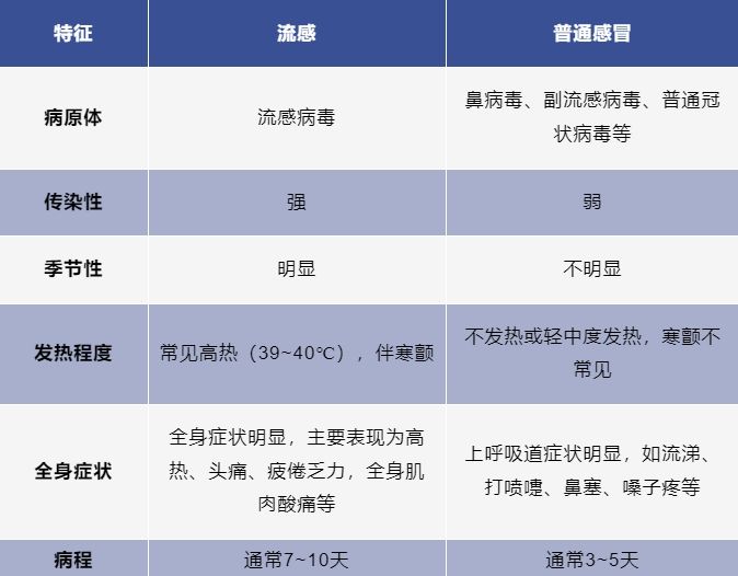 流感和普通感冒雖然都是呼吸道疾病,但兩者是完全不同的。下表列出了流感和普通感冒區別: