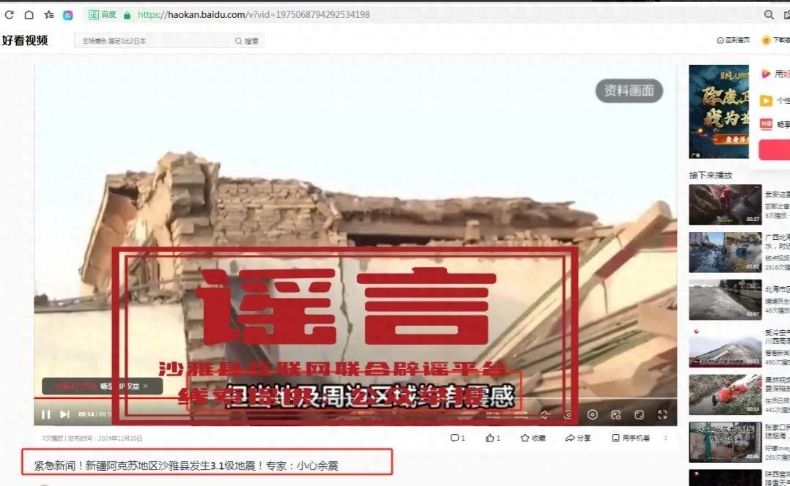 但有部分自媒體賬號罔顧事實和真相,發(fā)布與此次地震不符的地震廢墟或災(zāi)后救援凄慘等地震謠言圖片和信息,博取流量誤導(dǎo)網(wǎng)民。