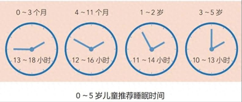 (1)學齡前兒童:《0歲~5歲兒童睡眠衛生指南》(WST579—2017)推薦0~5歲兒童每天總睡眠時間具體如下圖。
