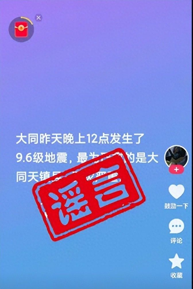 2025 年 1 月 7 日 16 時 33 分,某短視頻平臺一個網名為 “劉雷洋”的賬號悄然發布了一條令人震驚的消息:“大同昨天晚上 12 點發生了 9.6 級地震,最為嚴重的是大同天鎮縣,受災嚴重。” 此消息一經發出,迅速在網絡上引發關注與傳播,不少網友被這突如其來的 “災難通報” 弄得人心惶惶。