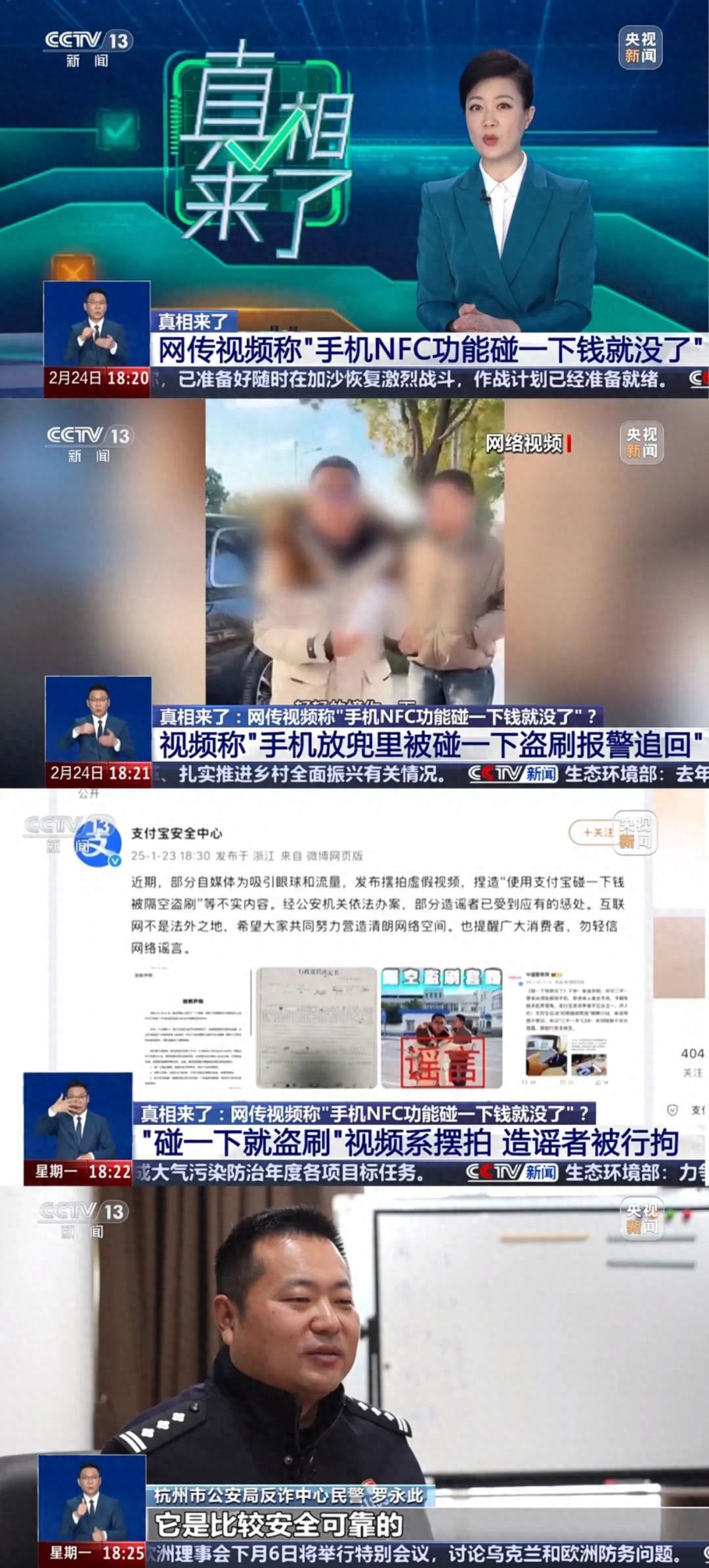 2月24日,央視新聞?lì)l道《真相來(lái)了》節(jié)目,深入聚焦“手機(jī) NFC 功能碰一下錢就沒(méi)了”網(wǎng)絡(luò)傳言。節(jié)目現(xiàn)場(chǎng),杭州公安民警與網(wǎng)絡(luò)安全專家通過(guò)技術(shù)演示指出:現(xiàn)行NFC支付需多重驗(yàn)證且存在感應(yīng)距離限制,所謂“隔空盜刷”不具備技術(shù)可行性。