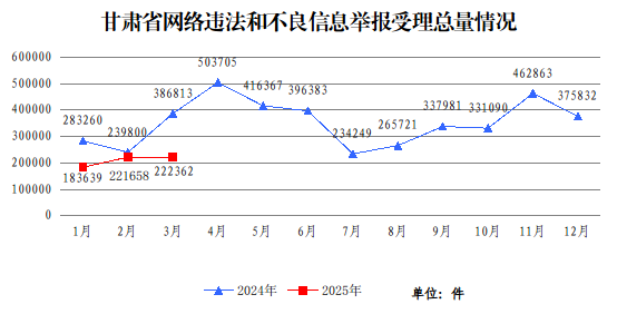 2025年3月甘肅省受理網絡違法和不良信息舉報22.2萬件