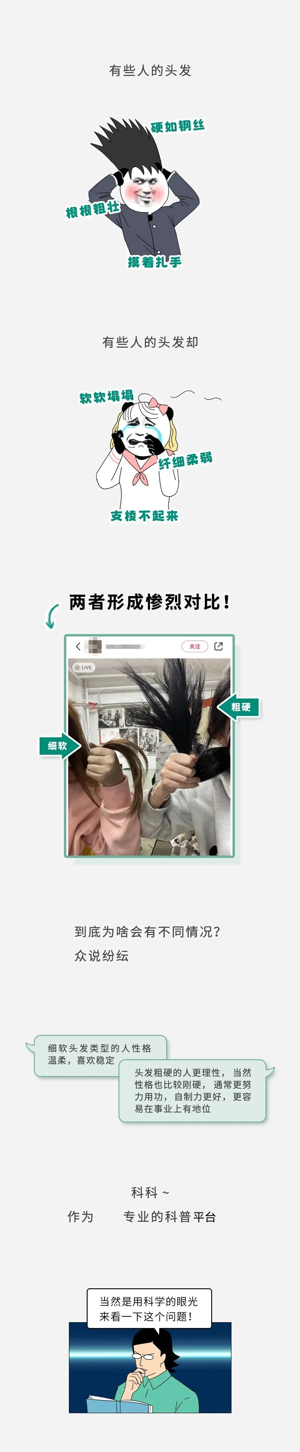 為啥有的人頭發又粗又硬,有的人頭發又細又軟?