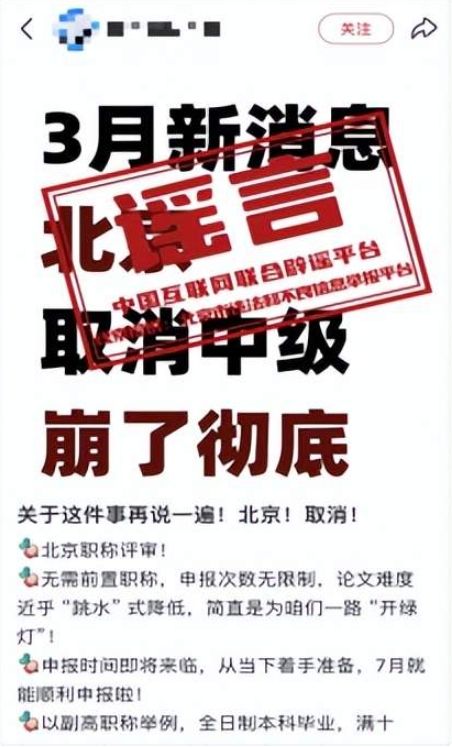 辟 謠 “北京取消中級職稱”系謠言