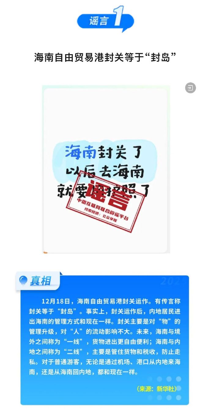 海南自由貿(mào)易港封關等于“封島”、激素蛋大量流入市場、一次性信用修復等于“信用洗白”…這些謠言別再傳了