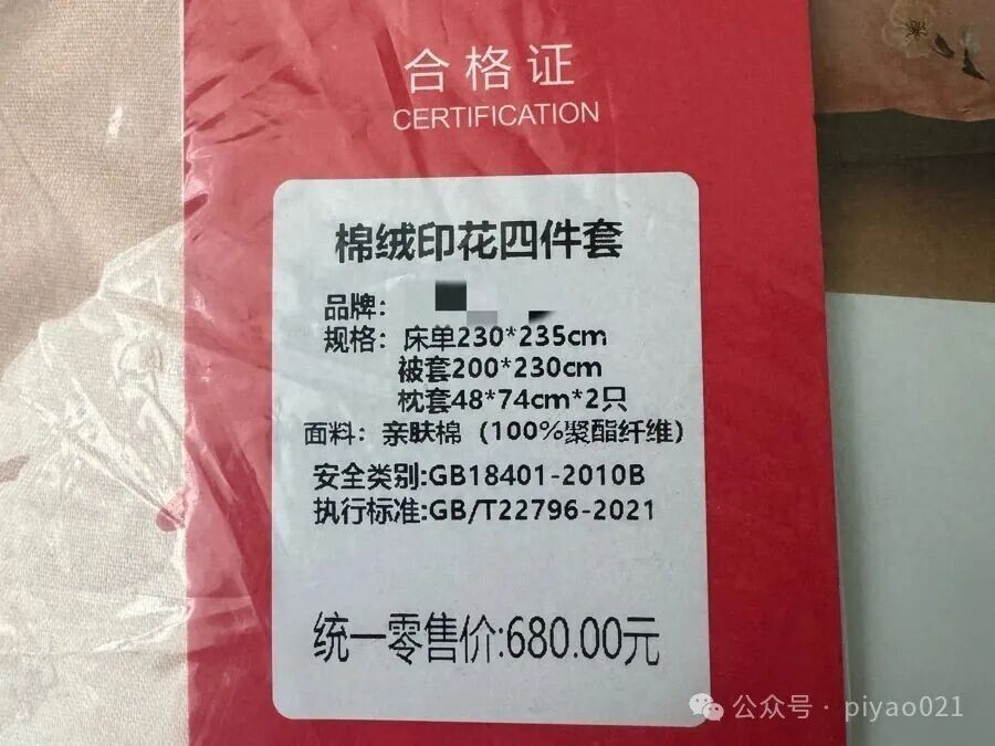 具體來看,床上用品的質量及標注應當符合GB/T 22796-2021《床上用品》、GB/T 29862-2013《紡織品 纖維含量的標識》等多項標準。標準對產品纖維如何標注、不同纖維的規范名稱等有明確規定。