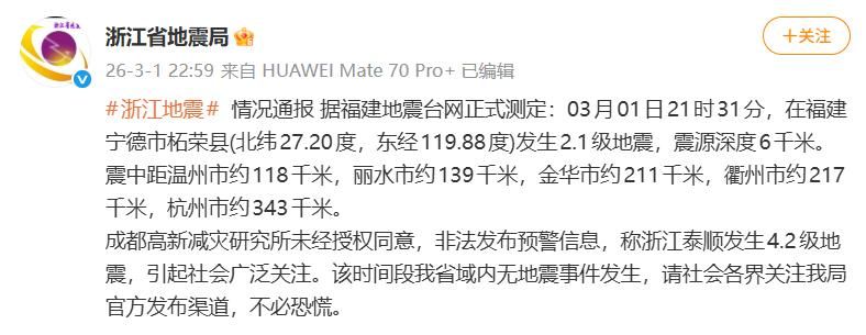 “浙江地震”沖上熱搜!浙江地震局最新通報:消息不實
